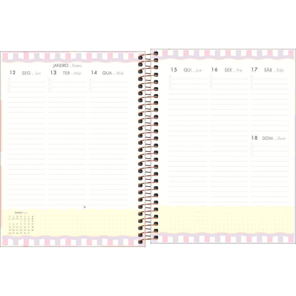 Com um design moderno em tons pastel e detalhes metalizados, ela é ideal para quem gosta de planejar a rotina com elegância e praticidade.